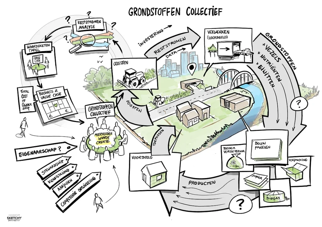 Met Grondstoffen Collectief Nederland richten we ons op het inrichten van deze waardeketen. Door betrokken partijen bewust te maken en projecten op te zetten, soms met subsidies, verkennen we de waarde van deze keten en tonen we aan dat de biobased economie haalbaar is.